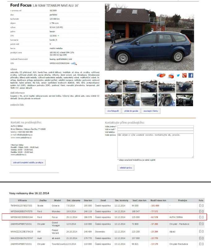 WF0SXXGCDS9G53244 Ford Focus 25.11.2014 186 578 Česká republika 13.12.2014 125 000 - 61 578 AUTA Z BRNA
