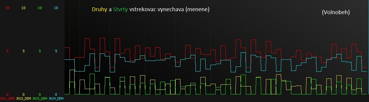 - z grafov vidime, ze menene vstrekovace na tretom a stvrtom valci vynechavaju, ale niekedy aj prvy, povodny vstrekovac na prvom valci.