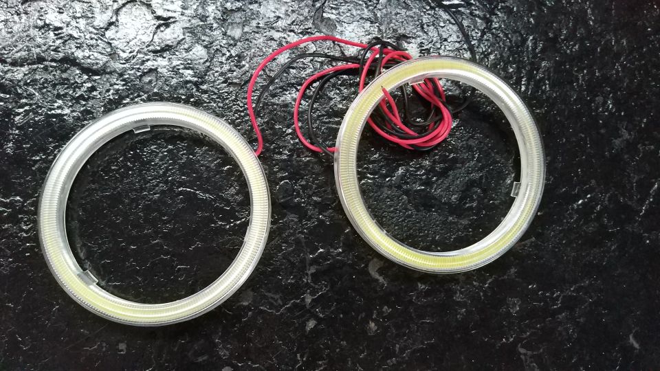 Zložitejšie v tom, že originál svetlá nemajú "predprípravu" na použitie krúžkov, tzn. musíš ich tam ozaj nalepiť nejakou obojstrannou páskou, prípadne sa robia aj verzie ktoré majú tenké drátiky na zaistenie o niečo zozadu a tak držia na mieste. Čiže budeš musieť toto nejako vyriešiť aby ti to držalo.