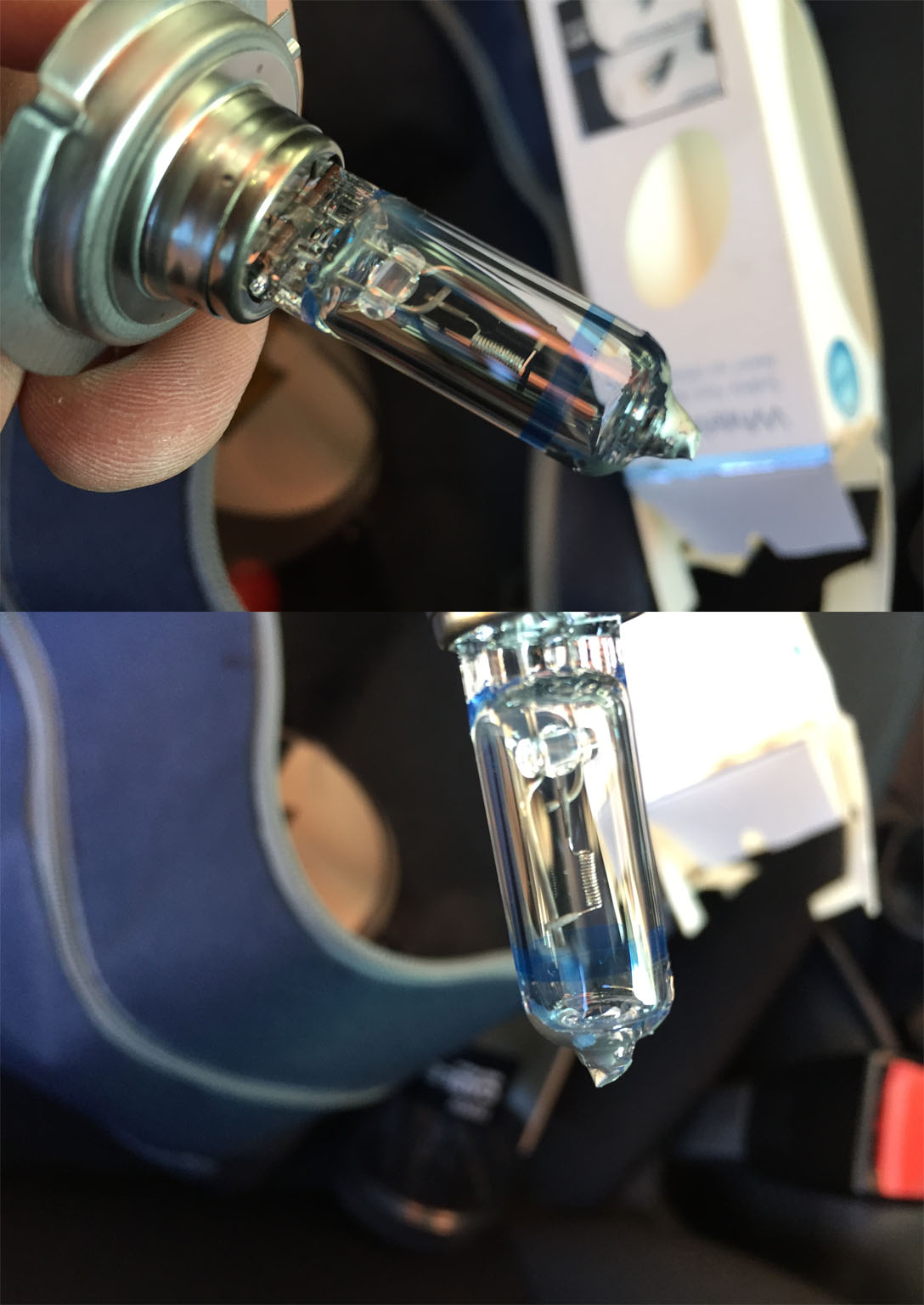 Ešte pridávam fotku F2 vs. halogénové žiarovky GE Megalight 120: Tu je vidieť, že moje halogénové svetlá jednak nie sú asi úplne dobre nastavené a jednak aj silu F2 žiaroviek, ktoré kompletne presvietili obyčajné žiarovky.