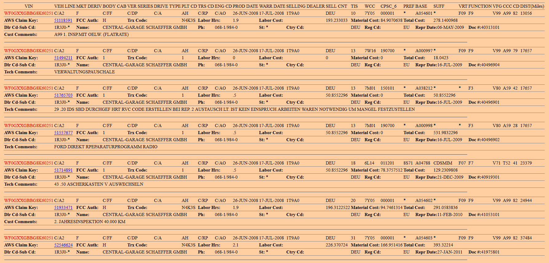 mohl bych poprosit o záruční opravy tohohle Mondea? Na fordzoně 5 záznamů.