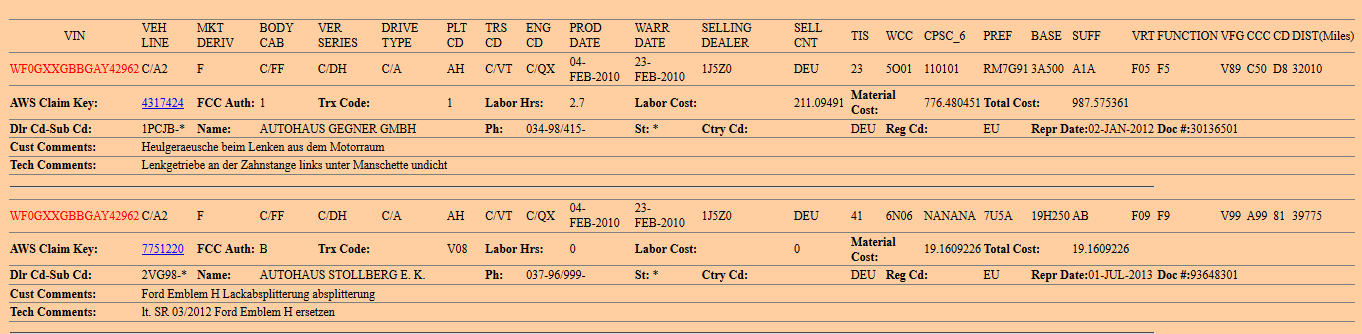 Může mi někdo dekódovat 2 záruční záznamy u tohoto Mondea? VIN: WF0GXXGBBGAY42962