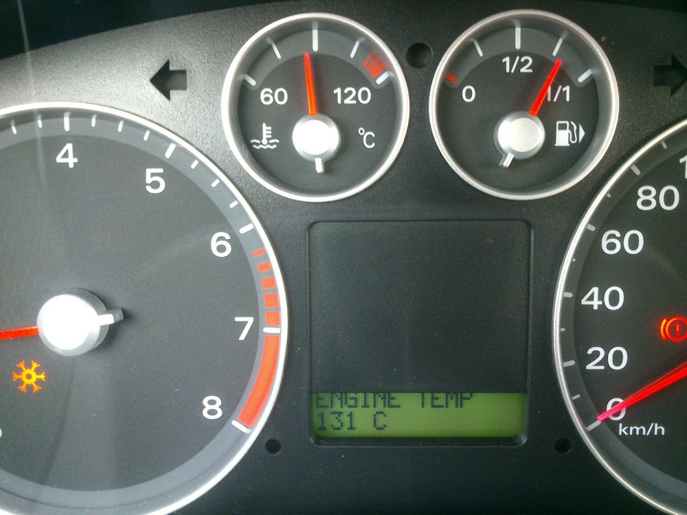 Ručička teploty chladicí kapaliny byla na cca 65 °C a zároveň ukazoval display Engine temp 100°C.