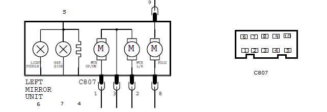 Kurník, ta zrcátka mají sice 9 drátků, ale jen 7 pinů na konektoru je obsazených a podle toho schéma výše jich má být obsazených 9. Copak to má c-max jinak, než focus?
