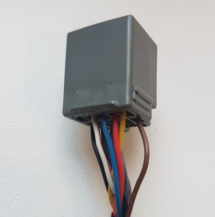Takže, konektor je tenhle 8-pinový, 7 pinů je obsazeno (jde ven do zrcátka. Vypadá to, že 7 různých kablíků jde i z auta, ale to tipuju jen podle fotky. zdá se mi, že stejné konektory mají Mk2 C-Maxy?