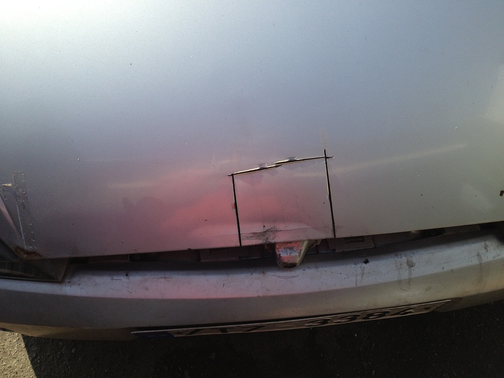 Zavolal jsem do servisu, kde řekli jen "Ajajaj". Přijel jsem tam, koukli jsme spolu do sousedního Fokuse a žádný rozumný nápad neměli. Rozhodl jsem tedy, že budu jezdit bez zámku a otvírat haubnu šroubovákem. Postupoval jsem tedy zepředu , kde jsem zámek obvrtal okolo, našrouboval jsem do něj hák a vytáhl jsem ho dopředu. Tyčka byla v pohodě a je dokonce kovová - vyčvachtal se zámek. Díra je schovaná pod logem, otevřít se to dá křížovým nebo plochým šroubovákem.
