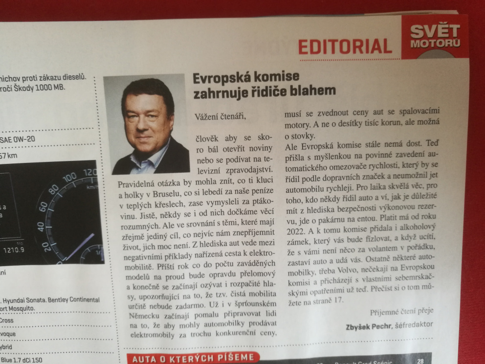 asi si ho prectu - v posledni dobe mam pocit, ze EU pochopila, ze snizovanim emisi skoro zabila domaci produkci automobilu a tak se to vyrobcum snazi vynahradit tim, ze budou do aut povinne davat spoustu elektroniky, kterou ridic nepotrebuje (nebo muze vypnout), ale kterou musi zaplatit ... a vyrobce tak muze argumentovat pro zdrazeniTomFocus píše:Spíše si přečtěte ten světáktam vysvětluji proč a jak. Jak se pomalu utahuji šrouby a vše se chystá na autonomní kapsle.