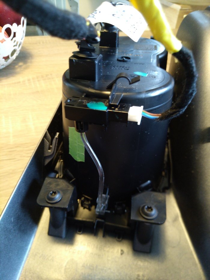 Přikládám z podhledu, konektor je přilepený k polstrování, tedy až se oderve ta jejich páska.