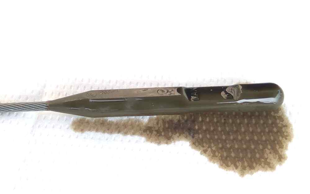 Ta cast, ktoru odcitavas, musi byt otocena k bloku motora, ako tu niekto pisal. Pripadne trochu do strany. Ak je smerom dole, je cela od oleja. A neodcitavaj olej par minut po vypnuti motora. Nieze nie je steceny z motora, ale asi treba nechat stiect olej aj v tej trubicke merky.