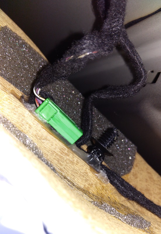Přikládám z podhledu, konektor je přilepený k polstrování, tedy až se oderve ta jejich páska.