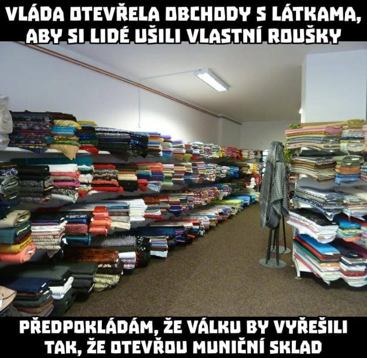 Anna, musíme chránit naše seniory, priorita je Čína a Korea, ale Čína víc, tisíce volání na kólcentrum, vláda rozhodla, otevřeme galanterie. Celé dny řešíme Kovit-19- ten koronairus, děkujeme švadlenám, to šití,