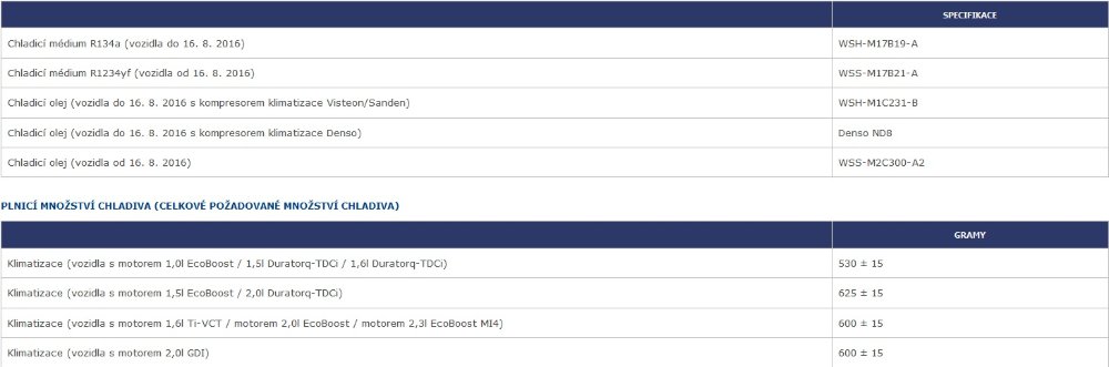 Tak jsem dnes nechal v servisu naplnit klimu po výměně kondenzátoru. Pustili mašinku, vybrali z menu cosi, že prý 600 g to chce. A tady výše koukám, že můj motor 1,5 TDCi má 530 g. Takže jsem zvědav, co to udělá (pokud jsem netěsnost systému vyřešil). Ach jo, nechci servisákovi říkat, že ta mašina má blbou databázi (vybral asi jiné auto, pod ruce jsem se v tu chvíli nedíval).