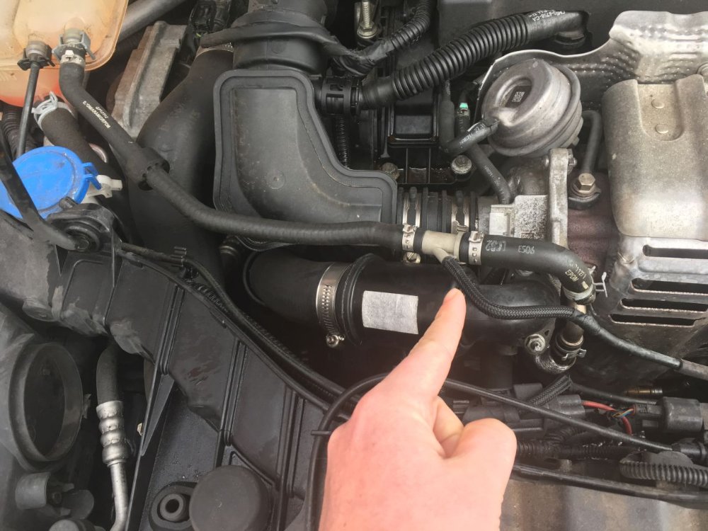 Tohle je starší verze,kdy ta slabá trubička jde ze strany motoru nad převodovkou. U toho napojení to pravě praská jak je namáháno vibracemi a teplem od turba.