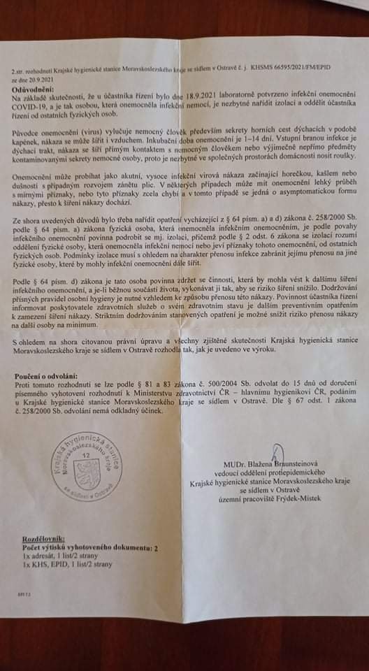 Kámošce (pozitivní v karanténě ) poslala hygiena pokyny, jak se má v karanténě chovat. Doporučeně a do vlastních rukou. :dih: