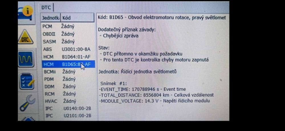 takhle to vypada, ze blbne levy svetlomet (a chyba jde do jednotky svetel po sbernici, proto se pri prohozeni svetel chyba neprestehuje)