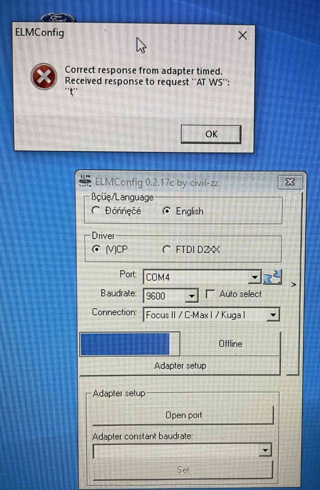 Mam taky kablovy adapter, taky som vedel zohnat. Skusal som aj win7, aj win11, vseliake drivery, starsie - novsie verzie elmconfig, chyba je stale rovnaka.