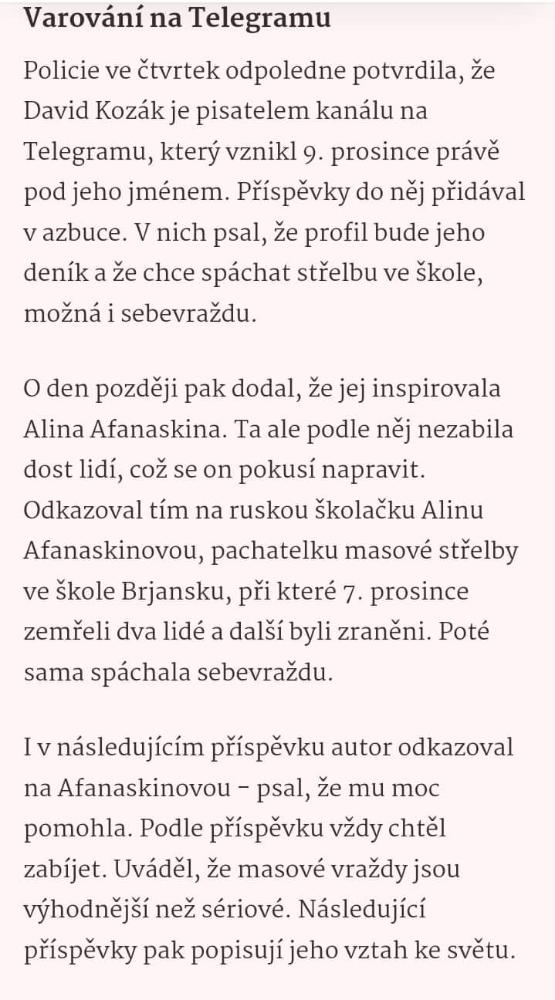 https://www.idnes.cz/zpravy/domaci/poli ... domaci_svmstano. píše: 22.12.2023 12:28Ani to dlho netrvalo.stano. píše: 21.12.2023 18:46 A vlastne viem. nebudu ticho. este si pochvalia, ako dobre vyriesil tych progresivcov, liberalov, prizivnikov a vzdelanych studentov. Takych, co oni nenavidia.
