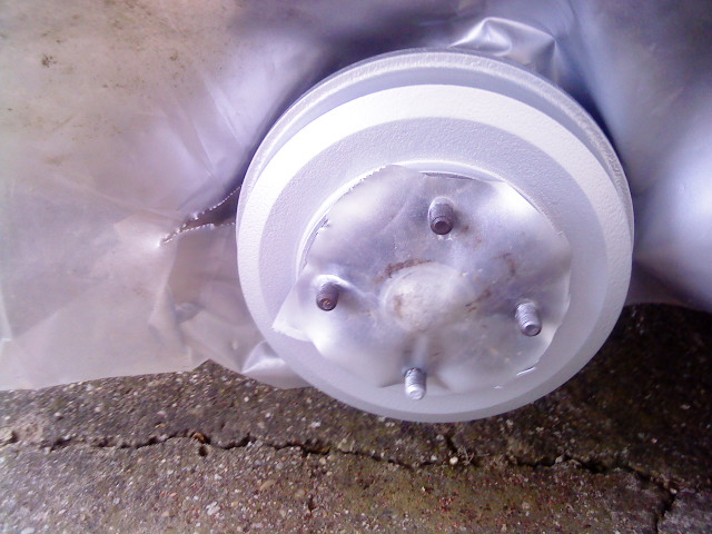 Tak já jsem nazákladoval zadní bubny a stříknul červeným spreyem. Na přední brzdiče jsem si koupil barvu na kamna, červené jsou sportovní (nemám) a navíc na té černé nepůjde vidět prach z destiček. Foto je jenom zkouška barvy, dneska to pěkně očistím a natřu.
