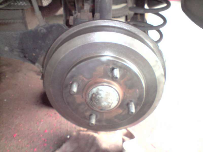 Tak já jsem nazákladoval zadní bubny a stříknul červeným spreyem. Na přední brzdiče jsem si koupil barvu na kamna, červené jsou sportovní (nemám) a navíc na té černé nepůjde vidět prach z destiček. Foto je jenom zkouška barvy, dneska to pěkně očistím a natřu.