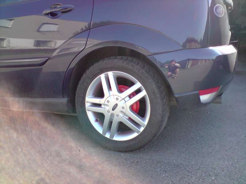 Tak já jsem nazákladoval zadní bubny a stříknul červeným spreyem. Na přední brzdiče jsem si koupil barvu na kamna, červené jsou sportovní (nemám) a navíc na té černé nepůjde vidět prach z destiček. Foto je jenom zkouška barvy, dneska to pěkně očistím a natřu.