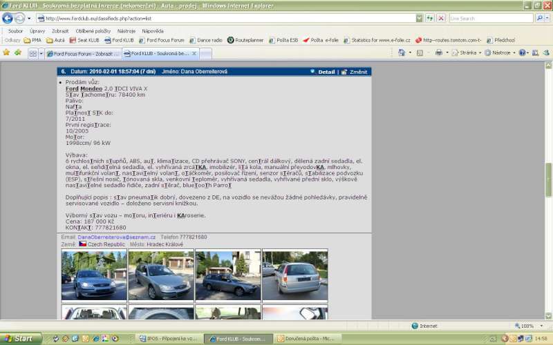 ... "In Ihrem Land gibt es jemanden der unseren Firmenstempel gefälscht hat und dieser Mensch stempelt Damit Inspektionen nach. Wir werden mehrmals im Monat von Ihren Landsleuten angeschrieben die einen Ford gekauft haben. Der Name der Frau Dana Oberreiterova aus Hradec Kralove.