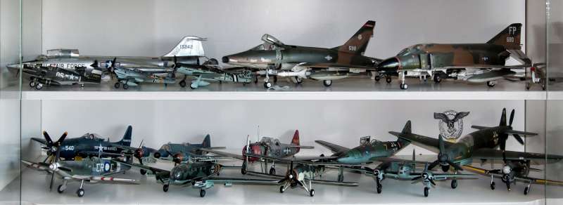 Jinak pohled na pár mojich - historyckých - čím dále tím více chřadnoucí plasťáky 1:72 a 1:48.Ještě jich mám ještě v krabicích bednu (1:48).K tomu ještě 2 stříkačky 1xBadger a Aerograf .Už to asi nikdy stavět nebudu.Také jsem stavěl odznaky :D (1:72)které jsem vyměnil za čtvrtky.