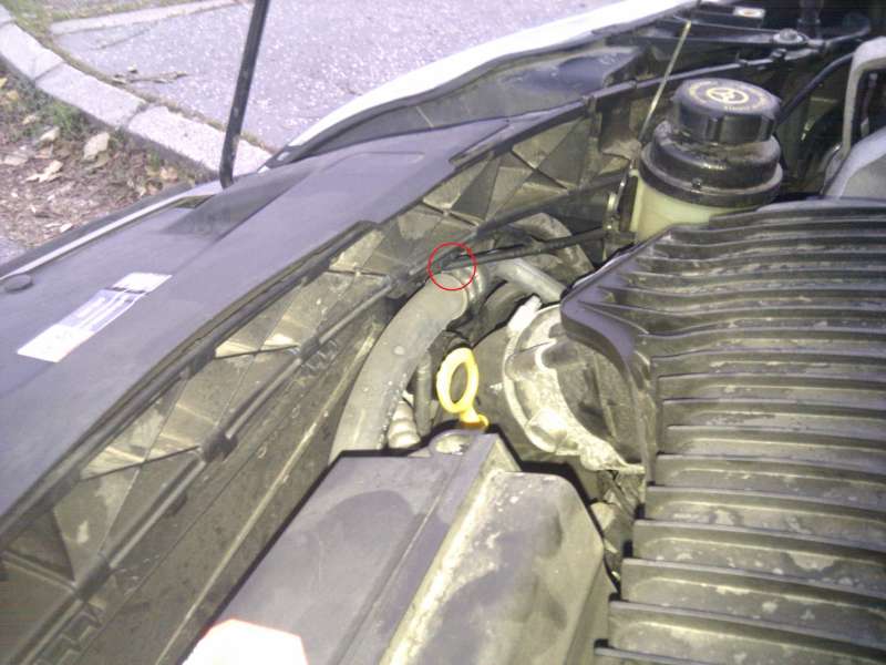 Pred casom u nich boli dve mondea s 2.5T motorom, ktore uvarili motor tak, ze ho museli cely vymenit. Soferi nepozerali na pristrojovku, alebo na to kaslali, alebo to tam neukazuje a prehriali motor domrtva. Problemom je spatna hadicka chladiacej kvapaliny, ktora sa sucha o hadicu klimatizacie a po case sa prederavi, co ma za nasledok unik chladiacej kvapaliny. Ja ju uz mam trocha nacatu, ale nastastie nie moc. Staci tie dve hadice od seba oddelit, bud priviazanim tej malej hadicky o nosnik nad nou, alebo jej obalenim niecim, nejakou gumou. Na obrazku som vyfotil dane miesto. Neviem, ci sa to tyka aj Focusa ST, spominali len mondeo, tak je mozne, ze Focus ST to ma riesene inak.