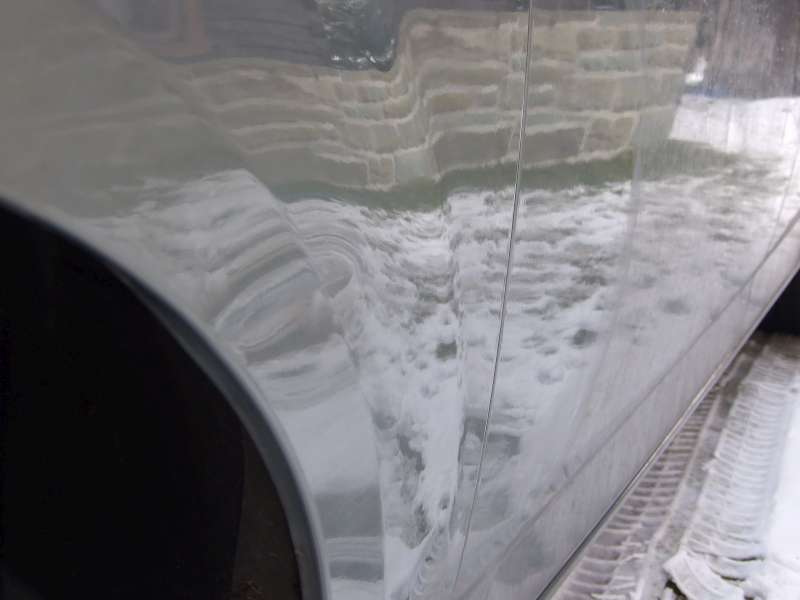 Lak tam je škráblý, ale ne moc, ta bílá barva je hlavně z toho auta co mi to udělalo. Tuším dokonce které to bylo, ale dokazuj to... Asi před půl rokem jsem na vlastní oči viděl jak nějaké holka při couvání nabuřila do blatníku auta na parkovišti, který úplně promáčkla a ujela. Stál jsem asi 3 m vedle, takže SPZ-ku jsem měl, a pro poškozeného to dopadlo dobře. No asi počkám do konce zimy, jestli něco nepřibyde a nechám to opravit až pak.