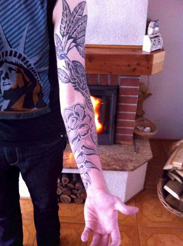 Ještě mám předloktí na pravé ruce, ale to nestojí za ukázky...první tetování... bude z toho časem rukáv, tak jako z levé ruky....