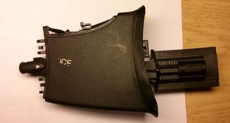 Nejprve je potřeba oddělat ovladač od "sloupku" s volantem, stačí malý šroubovák a zezadu na ovladači zmáčknout, ovladač se uvolní. Pak už jen odpojit konektor a máme tohle: Nejhorší část bylo rozdělání ovladače, nejprve tlačítko SEEK Pak tlačítka hlasitosti Tlačítko mode může zůstat na místě, oddělá se až po vytažení vnitřku ovladače z pouzdra.