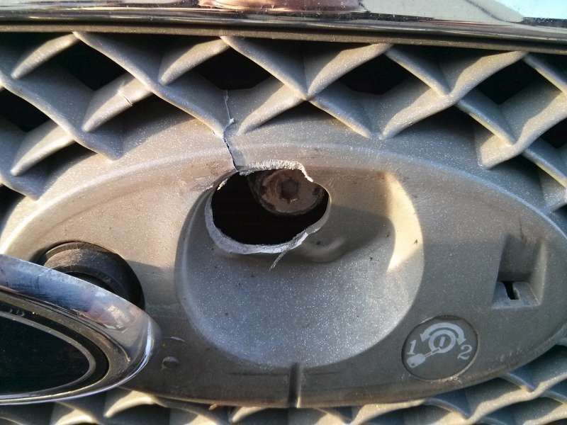 Každopádně na první pohled vypadá Mondeo relativně OK, na druhý pohled už tolik ne. V podstatě nárazník je na opravu a stříkání, maska na výměnu, světla OK. Problém nastává po sundání masky (viz foto). Vzpěra pod nárazníkem je na výměnu, pod ní je lehce poškozený z vrchu chladič turba (jestli to vůbec je chladič turba:D)