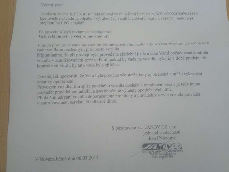 Taky sem nic jineho necekal, ale takhle odbyt se teda nenecham.. Jeste napisou takovou blbost, ze po prohlidce v servisu na to neprisli.. Takze to nemohla byt skryta vada