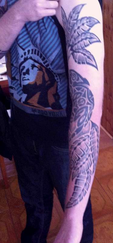 Ještě mám předloktí na pravé ruce, ale to nestojí za ukázky...první tetování... bude z toho časem rukáv, tak jako z levé ruky....