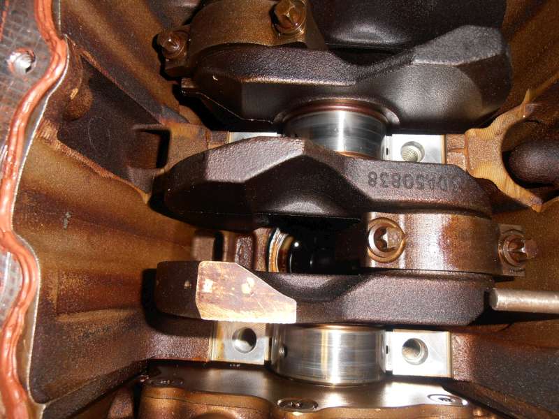 Horní dva šrouby drží nádobku, ale pod spodním šroubem alternátoru je nějaká kus fragmentu něčeho co se kdysi urvalo.