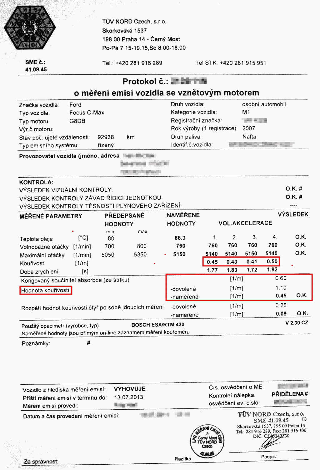 To: C-Maxis: Mas tam jeste dost rezervu do 1,1,tak to neres. Je pravda, ze s DPF by jsi mel mit jako psal Komi. Ja na stejnem emisnim pristroji Bosh mel kourivost 0,7 a to mam vykuchany DPF.