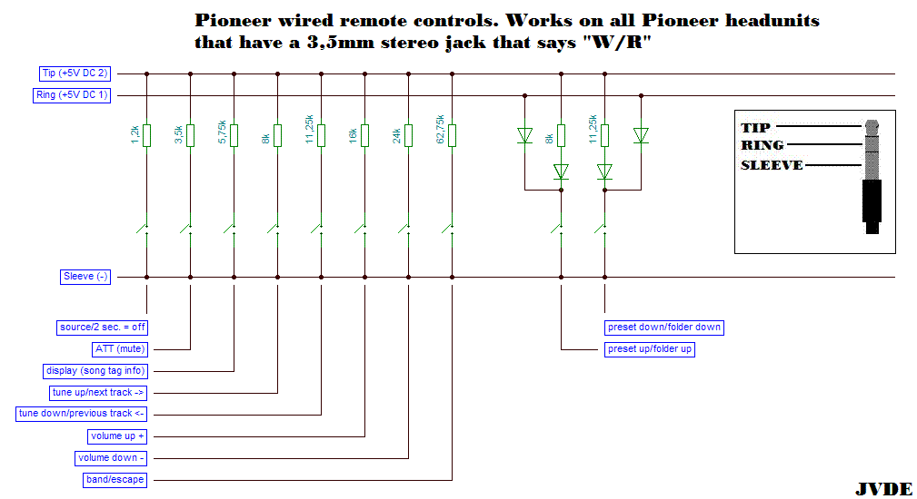LG má stejný hodnoty odporů jako pioneer, takže se drž toho co sem postnul já a co teď napíšu a stačej ti jen dva kontakty - třetí nepotřebuješ - podívej se pořádně na to schema k čemu je ten třetí kontakt - k funkcím které ty budeš připojovat není třeba...