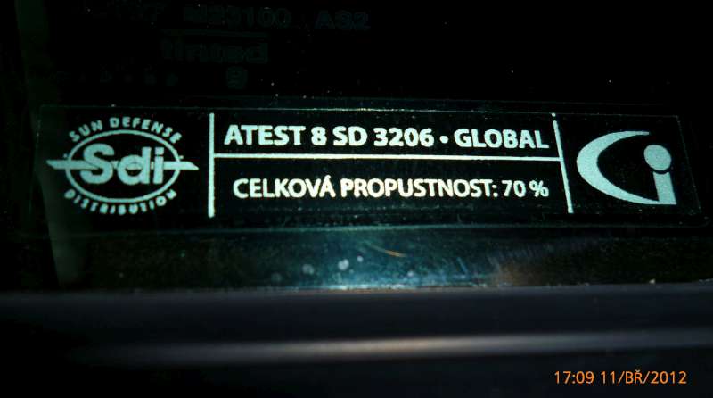 djdekl: na technický my řekli že zadek je nezajímá ať jsou tam jakýkoliv folie ale tady jde o předek a ten mam čistej tam folie není tak to by snad nevadilo néé??? a ten co my dělal ty folie v Plzni JAPKKOR:CZ tak my řekl že musim mít čistej předek aby jsem dobře viděl do bočních zrcátek. Tak nevim no... já si myslim že asi nejsem jedinej kdo má zatmavený zadní skla a jezdí do zahraničí...