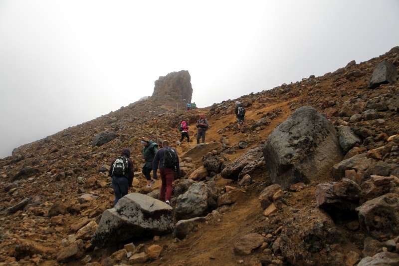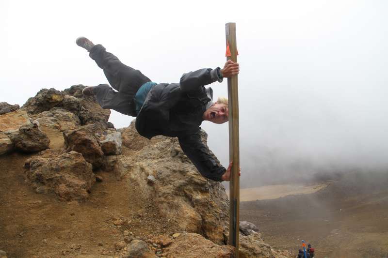 Na velikonoční víkend a pondělí jsme si už dlouho dopředu začali plánovat výlet do Tongarira. Ben a Zoey, to je anglický pár, který s náma trhal jablka, měl nápad, že můžem jet hromadně a složit se na benzín, protože to je asi necelých 200km od Hastings. Takže jsem jel já s mou kamarádkou, potom ten anglický pár, pak další český pár a ještě jeden welšan. Takze nás jelo 7 a krásně jsme se naskládali do našeho velkoprostorového auta. Já jsem teda samozřejmě řídil a připadal si jako autobusák, když jsem v zrcátku konroloval jestli mi tam vzadu někdo nezlobí. Vyrazili jsme už v sobotu po práci. Na noc jsme dojeli do Taupa, kde jsme přespali ve free kempu. Hned ráno jsme vyrazili směr Národní Park Tongariro. Tento NP se chlubí 3 vulkány Ruapehu, Ngauruhoe a Tongariro. Jsou to ještě celkem aktivní sopky, zvlášť Raupehu. Bouchá to tam prý pořád. My zrovna měli část zavřenou. Dál zde můžete vidět dvě modrá jezírka Emerald lakes, Red Crater a jíné. Bohužel už ráno nám zkazilo náladu počasí. Když jsme dorazili na místo, tak pořád pršelo a pán v shuttle busu nám říkal, že počasí je na prd a že toho dnes moc neuvidíme. Dál nám říkal, že během týdne museli odvézt vrtulníkem do nemocnice asi 5 lidí, protože na ně padali kameny, které se sesouvali zezhora. Opravdu jsme toho moc neviděli, všude jen mlha, mraky a šílenej vítr. Na druhou stranu máme zajímavé fotky a zážitky, protože vítr nás málem odfouknul. Potkali jsme dvě drobné japonky co leželi za kamenama a drželi se vší silou. Myslím, že se chudinky opravdu báli o svůj život. Nakonec z toho co jsme viděli a zažili jsme byli nadšení, taková měsíční krajina, všude jen vyvřelé kameny, splhání po skalách… Jezera a ani vrcholy sopek jsme neměli šanci vidět, takže víc už vám k tomu asi povědět nemůžu. Opět bych se chtěl do Tongarira ještě jednou vrátit až bude hezké počasí a užít si všechny ty krásy.