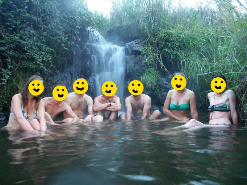 Nakonec jsme tento fyzicky náročný den, kdy jsme do zpět do kempu dorazili promočení, zakončili uplně nejlíp jak to šlo. Kousek za městem Taupo je horký termální potok. Jen jsme se tam rozvallili pod vodopád do přírodně vytvořeného poolu a popíjeli pivo. V té horké vodě se nedalo vydržet dlouho, ale dalo se zchladit v řece do které se ten potok vléval. Prostě ideální relax.