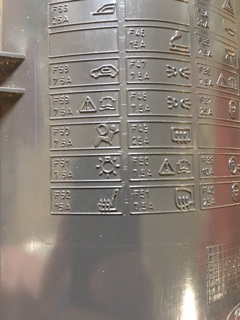 ahoj, tak jsem se zase vrátil k nesvítící SPZ, mám tu foto víka pojistek. Která je tedy pro SPZ? F62 je vyhřívání sedadel a F52 vůbec není