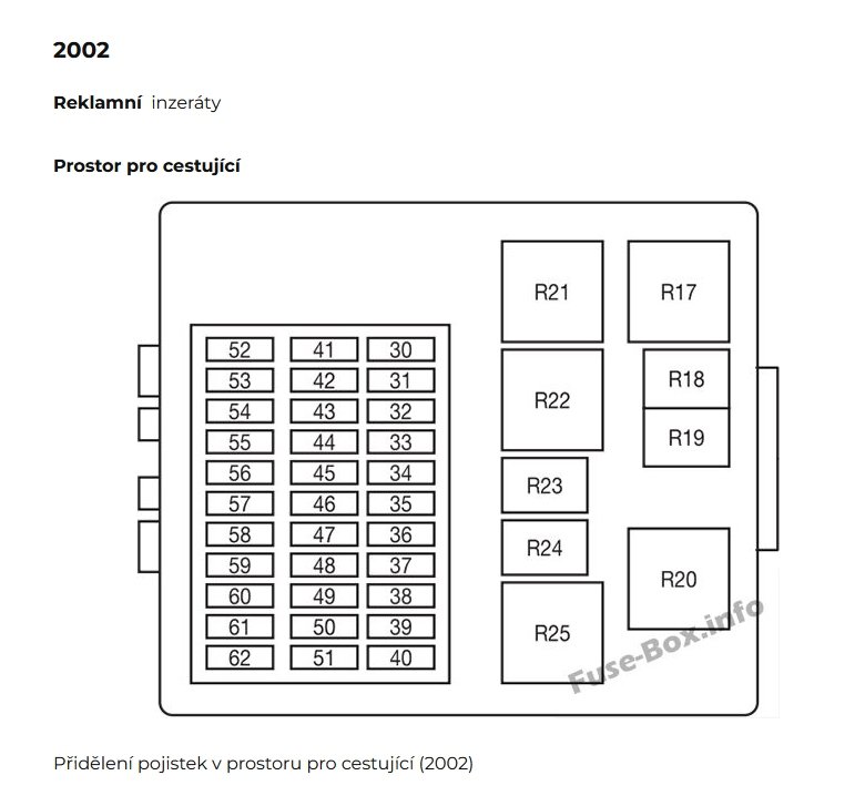 Kryt pojistek bude zřejmě zaměnitelný, takže symboly pojistek nemusí být nutně správně.