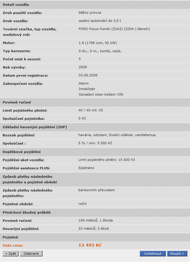 Komplikovaně jsem to zjišťoval a zjistil, že mám zatím auto pojištěné na 527000,-Kč (cena nového vozu). Jak to bude po roce (hodnota na kterou bude vozidlo pojištěno), nebyl nikdo na Allianz schopen odpovědět. Až na šestém tel. čísle a po provolání cca. 250 kč, jsem se dozvěděl, že tabulková cena Focuse Kombi 1.8 92 kW r.v. 2008 ve výbavě Trend (asi) je 375000,-Kč. Já mám ale Titanium, které se v Česku s motorem 1.8 neprodává a ani není v jejich tabulkách. Na mou připomínku, že mezi Trendem a Titaniem resp. Titaniem-X je dost velký cenový rozdíl, mi bylo řečeno, že by se to pak "nějak" přepočítalo. Každopádně zjistit hodnotu vozidla při pojištění on-line u Allianz je téměř nemožné.alexino píše:Forfoc: no tohle bys mel snad vedet ne, aby ses pak nedivilTeda ne ze by uz nebylo vcelku pozde...