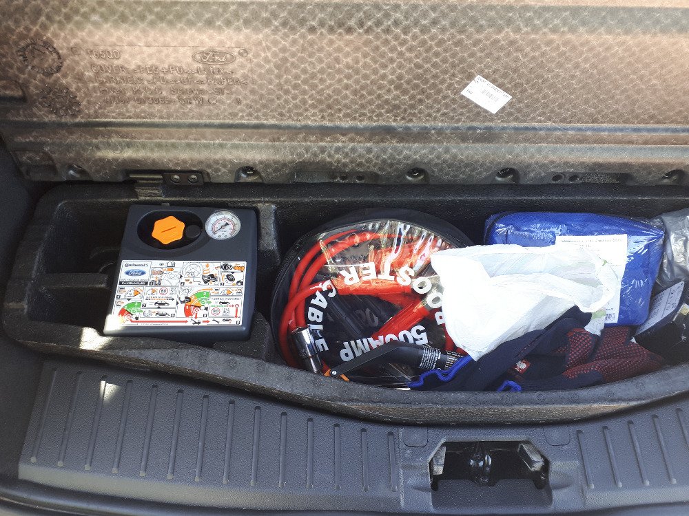 . Kufr je dost velký, tak není potřeba dělat místo v rezervě třeba na nějaký serepetičky. A to tam mám ještě kufr na základní nářadí, žárovky apod. a takovou tu brašnu z kobercoviny na trojúhelník, lano, rukavice i wc papír