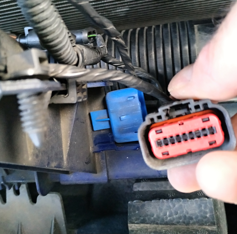 Při překlenutí kapotového spínače (viz tento návod, ten černý, vodotěsný konektor u chladiče) jsme objevil toto. Je to na masce, tedy předpokládám asi radar. Galaxy taková trošku socka výbava 120kW 2014 . konektor patří to dé modré záslepky.
