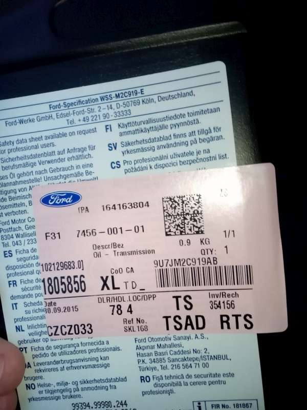 Potřeboval jsem kousek oleje do serva a ve ford in mi na základě mého VINu dali tohle: