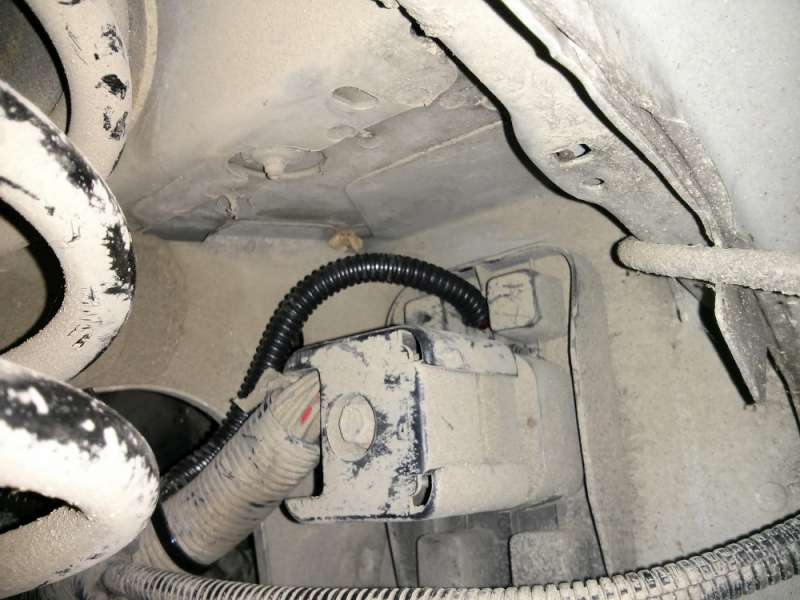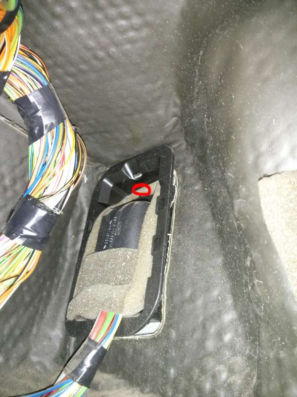 U řidičových nohou, vedle pedálů a za pojistkovou je tenhle průchod do podběhu