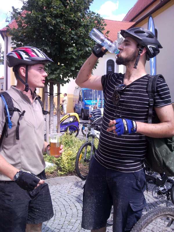 Som si chcel dat male pivo (budvarek mnam mnam) a ze len pre sutaziacich pche... vidim tu aj gulas, cigansku... Vsetko len pre cyklistov... Aj som rozmyslal ze sa 'de jure' prihlasim (4€) co by sa za gulas, cigu a pivo oplatilo, ale nedalo sa, vraj neskoro...