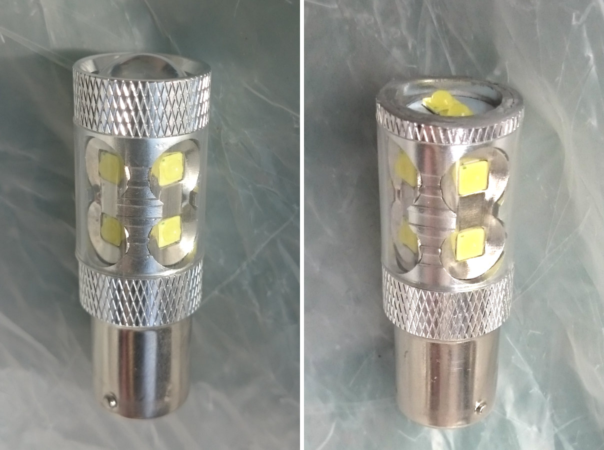 Ledky bez lupy mají jiný typ led čipů, takže si myslím že by svítily míň, ale musel by to zase někdo vyzkoušet. Já jsem pročetl všechny diskuse a stejně jsem se nic nedozvěděl a tak jsem risknul a koupil tu drahou ledku s čočkou, která bez úpravy svítí dost mizerně. Po úpravě už je to ale supr a možná by svítila ještě víc do strany, kdyby se uřízlo ještě víc té kovové objímky