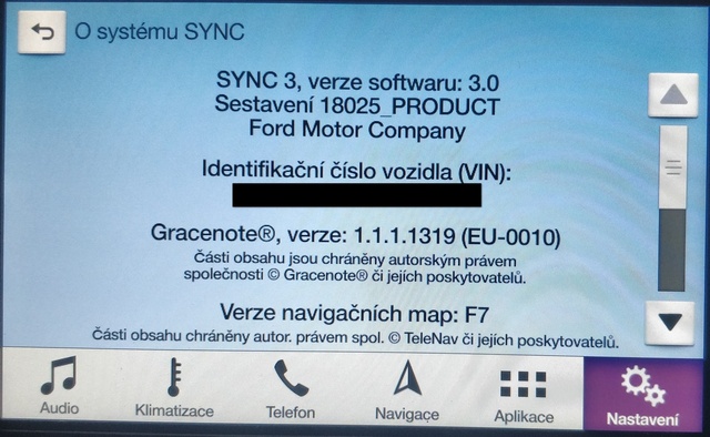 Nainstaloval jsem mapy F7 a hlasy dle Diamondear, poté tovární nastavení Sync 3. Viz obr. Zběžně vyzkoušeno a vše funkční.