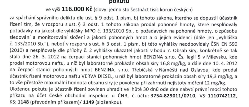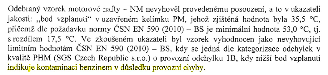 Zkopíroval jsem část zprávy z toho šetření na výše zmiňované čerpačce.